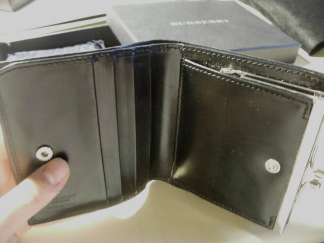 3. Burberry Wallet ด้านนอกสภาพใหม่มาก 95% แต่ด้านในมีรอยขูดขีดจากการใช้งานเพราะเป็นหนังแก้วค่ะ ดูสภาพตามรูปเลยนะคะ มากับถุงผ้าและกล่องค่ะ ขอปล่อยที่ 6800 บาทค่ะ