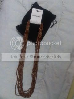 3.สร้อยจาก 21 FOREVER สีน้ำตาล ยาวประมาณ34cm ถึงหน้าอกพอดีค่ะ ใส่วันชิวๆหรือแต่งแบบแนวๆได้หมดค่ะ ขายเพียง 100 บาท