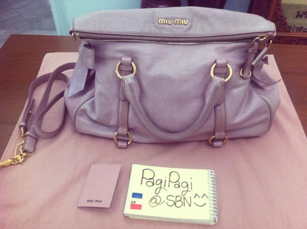 ขอเสนอขาย Miu Miu Bow regular size : mugettho สีนี้น่ารักมากกก ชมพูจางๆ หวานๆ