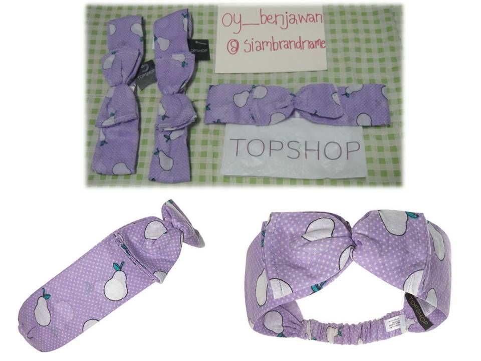 New with Tag !!! Topshop Headband ที่คาดผมสีม่วงมีโบตรงกลางลายผลไม้ ข้างหลังเป็นยางยืด ราคาช็อปไทยถ้าจำไม่ผิดประมาณ 450-490 บาท แบบเดียวกับคุณชมพู่และน้องพีคค่ะ เคยเห็นเต้ยจริณพรคาดในละครสามหนุ่มเนื้อทองด้วย ใส่แล้วน่ารักมากๆค่ะ ราคา Big Sale 350 บาทค่ะ