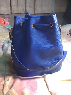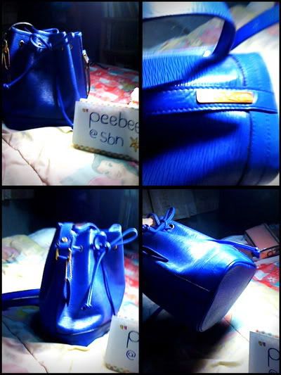 สีน้ำเงินลายไม้ ทรงขนมจีบ หูยาว สะพายไหล่ได้คะ