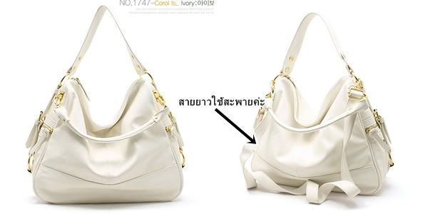 กระเป๋าตัวนี้เป็นแบบเดียวกับที่ขายใน Living Dolls และ Topshop เป็นกระเป๋าหนังผสมพีวี (รุ่นนี้บาง Web จะบอกว่ามาจากเกาหลี) กระเป๋ารุ่นนี้พิเศษตรงที่เราสามารถสะพายได้ถึง 4 แบบ มีสายสั้น และสายยาว (ปรับความยาวได้) จึงทำให้กระเป๋ารุ่นนี้ขายดีมาก ๆ ที่ร้าน กระเป๋าราคา 1000 บาท (คุณลูกค้าสามารถเช็คราคาได้ที่ร้าน Living Dolls ได้ทุกสาขา)