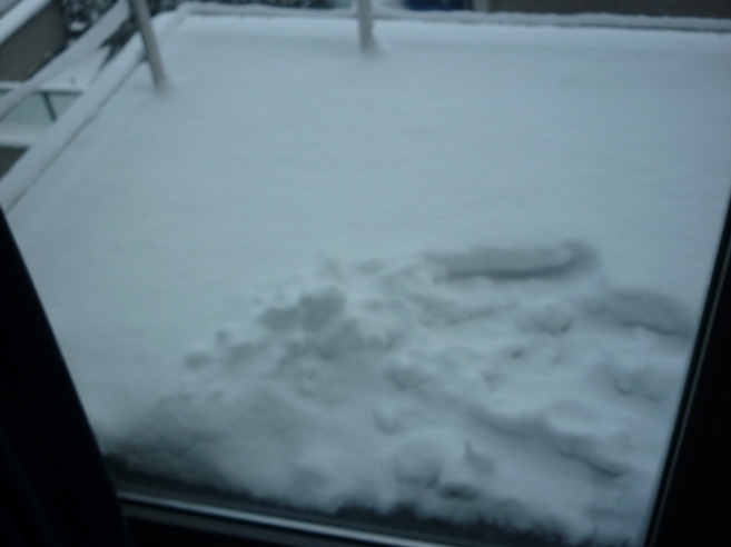 เช้านี้มีหิมะสูงประมาณ10-15ซมที่ระเบียงห้องนอนเห็นขาวๆฟูน่าเล่นดีเลยไปแงะเล่นเลย^_^