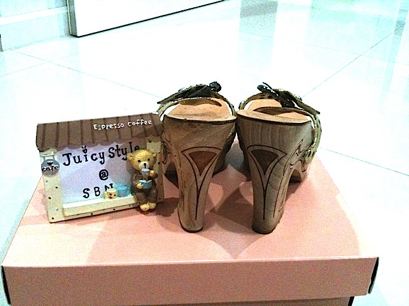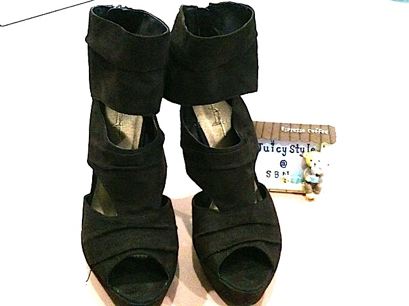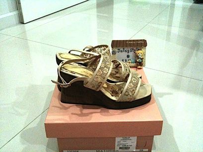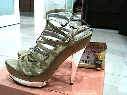 รองเท้าส้นไม้ เข็มขัดหนังสีทองมีเพชรเล็กๆ สูง 5" หน้ายก 1.25" SIZE 39