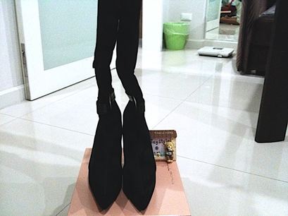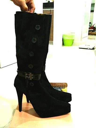 ของใหม่!! (เก็บจนลืม) รองเท้าบู๊ท กำมะหยี่สีดำ แต่งกระดุมข้างเข็มขัดหนัง ด้านในบุกำมะหยี่ลายเสือ น่ารักมากๆ ยาวใต้เข่า สูง 5" หน้ายก 1.25" SIZE 40