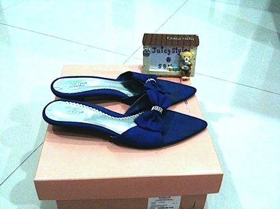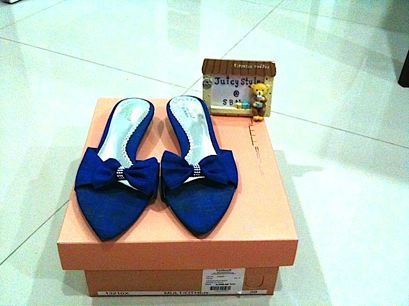 FASINO รองเท้าสีสันสดใส น้ำเงินสดรูปโบว์ประดับมุก สูง 1.25" SIZE 40