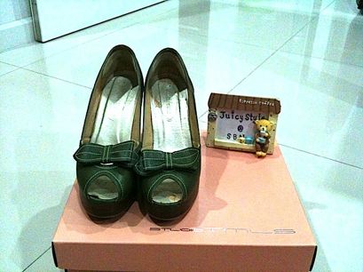 UNDRESS รองเท้าหนังคัชชูเปิดหน้า สีเขียวตะเข็บขาวรูปโบว์ สูง 4" หน้ายก 1" SIZE 38