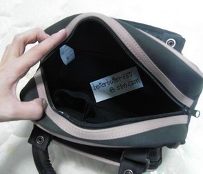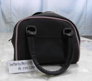 กระเป๋าเป็นผ้าสีเทาเข้ม ขลิบสีชมพูจ้า น่ารักจริงๆนะคะ ใช้แล้วได้ลุคคุณหนูดีค่ะ