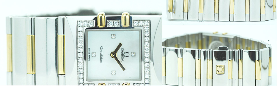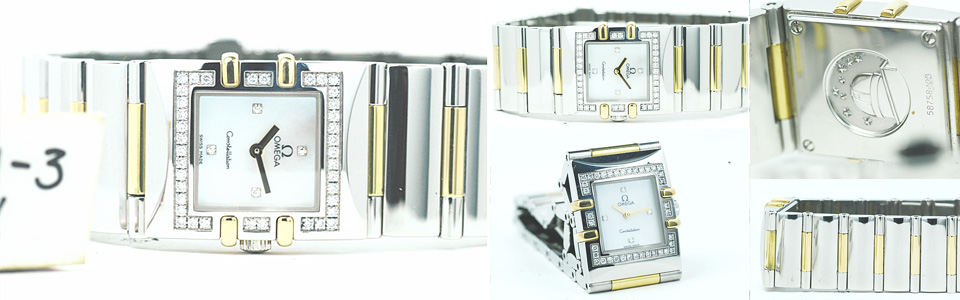 Omega Constellation หน้าปัดมุกขาวเบ้าเพชร 2กษัตริย์ ขอบเพชร ล้อม ทรงสี่เหลี่ยม lady size กล่องใบ