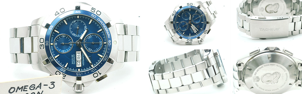 Tag Heuer Aquaracer Chronograph Auto Day Date หน้าปัดน้ำเงิน รุ่นท๊อปสุด สภาพสวย