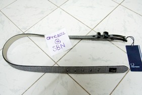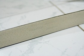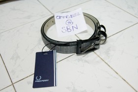 Detail หนังแท้ ญ/ช ได้ทั้งคู่ ไซส์ M ยาว 34 นิ้ว ความกว้างประมาณ 1.5 นิ้ว พร้อมหมุดตอกสัญลักษณ์น้อง Fred และปลายเข็มขัด