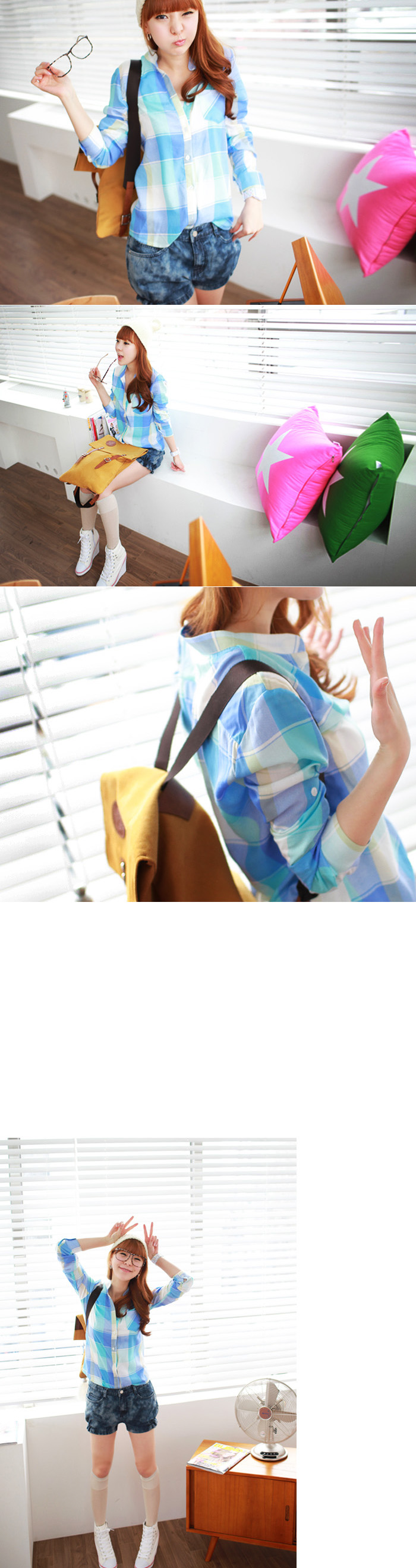2.เสื้อเชิร์ตสายสก็อตสีน่ารักมากค่ะ กำลังอินเทรนด์ในตอนนี้ แม็กกาซีนทุกเล่มต้องมีเสื้อลายสก็อตลง เป็นผ้าคอตตอน ไม่หยาบไม่แข็ง ใส่สบาย