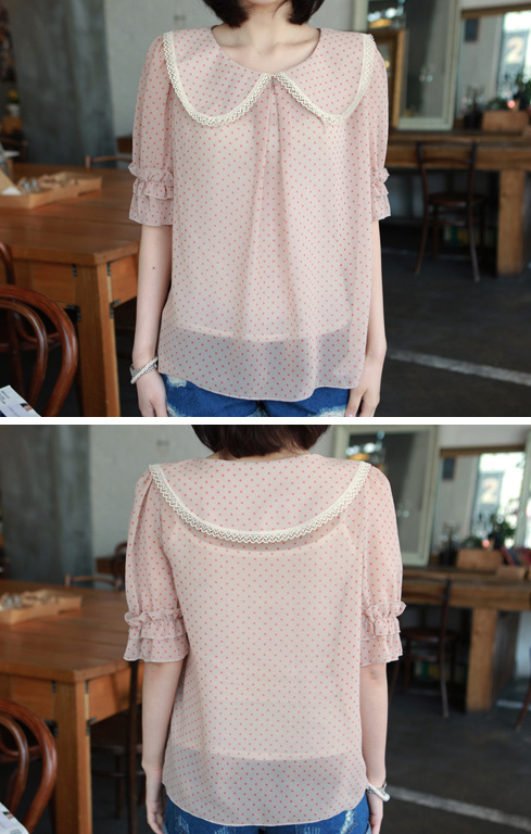 8.เสื้อแขนสั้นชิฟฟอน แต่งปกลายจุด ผ้านิ่มลื่น ทรงหลวมๆ ผ้าดีมากค่ะ