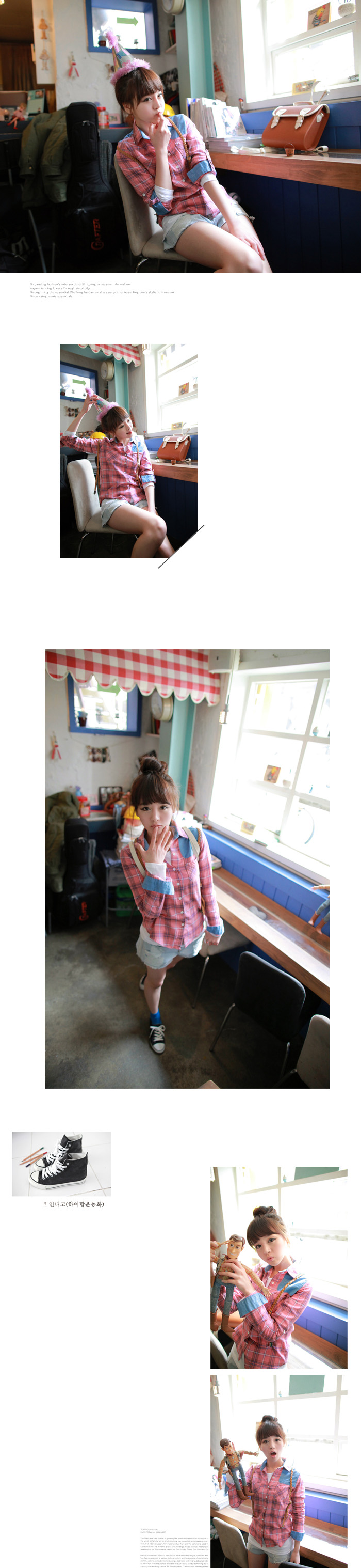 7.เสื้อเชิร์ตลายสก็อต สีชมพู แต่งแขนและปกสีฟ้า สวยเก๋มากมาย น่ารักสุดๆ