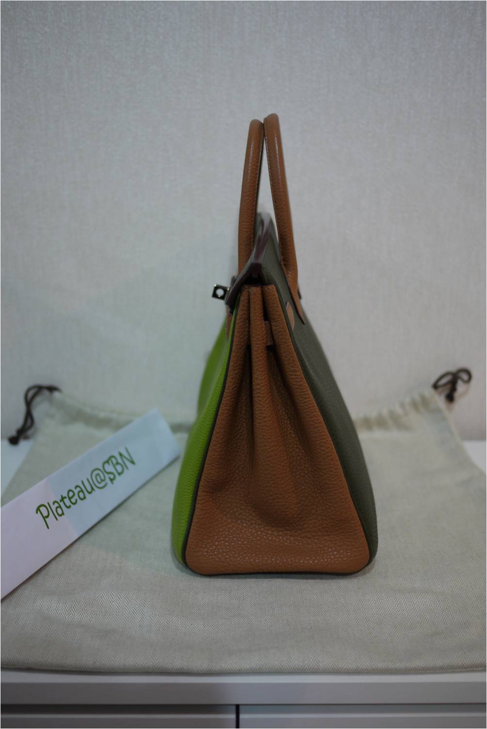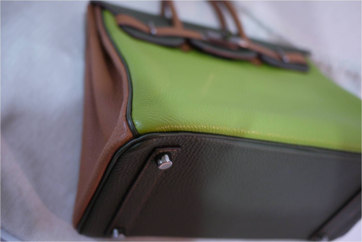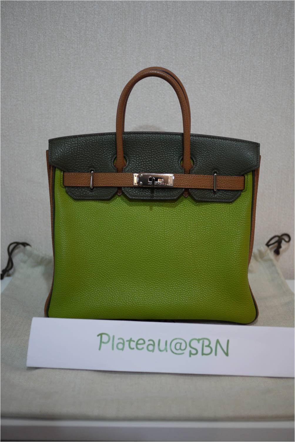 1. RARE & USED in great condition: Hermes HAC 28 cm / Tri-color Vert Anis-Gold-Dark Green colors / Togo leather / Ruthenium hardware (black gunmetal color) / Stamp K แต่สภาพเหมือนของใหม่ค่ะ