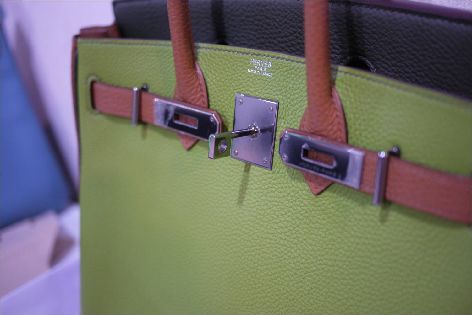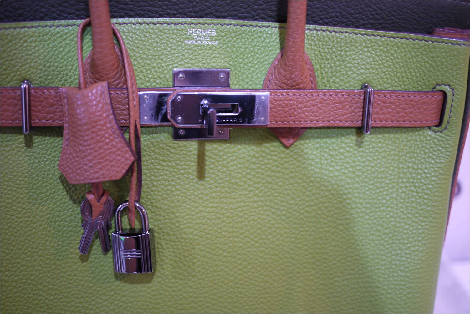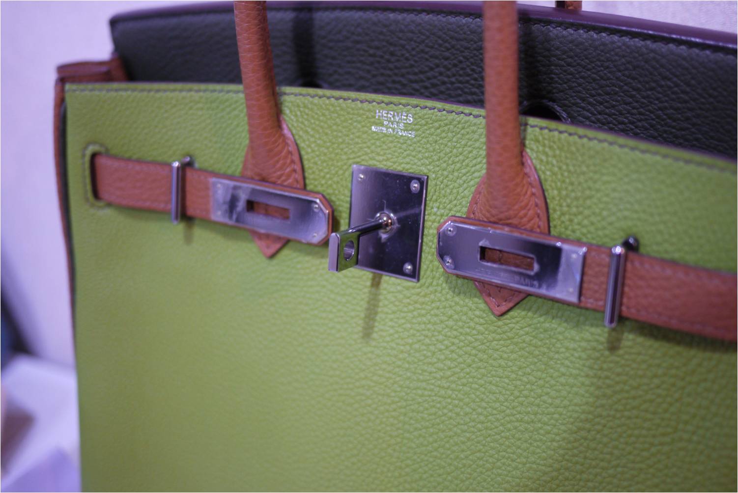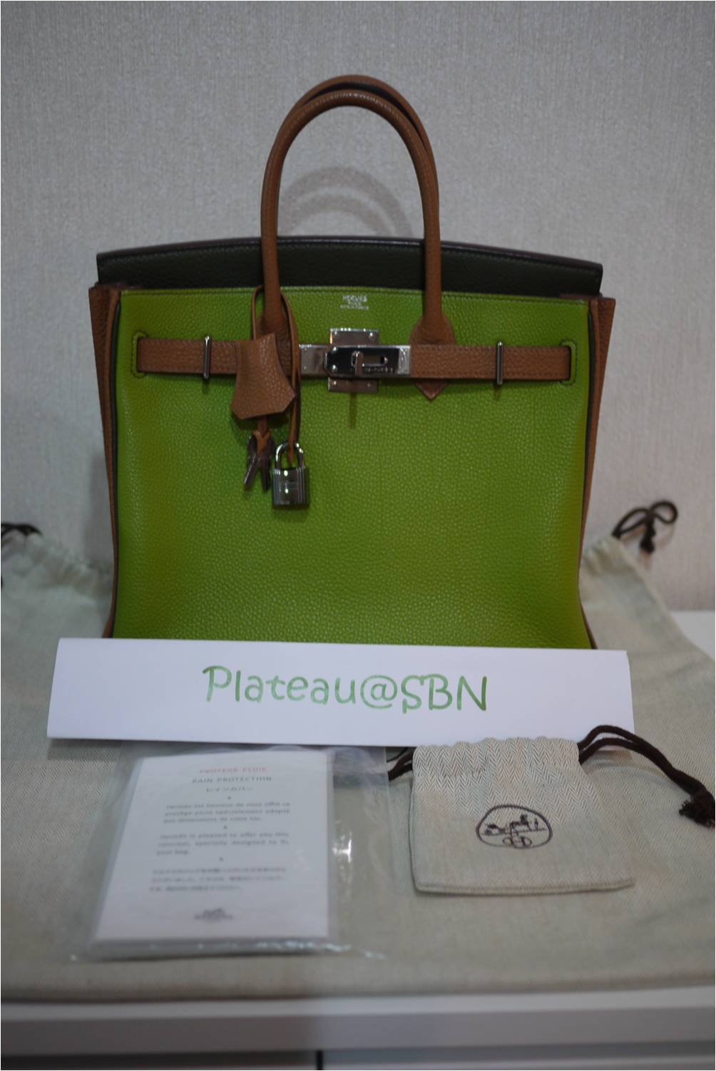 1. RARE & USED in great condition: Hermes HAC 28 cm / Tri-color Vert Anis-Gold-Dark Green colors / Togo leather / Ruthenium hardware (black gunmetal color) / Stamp K แต่สภาพเหมือนของใหม่ค่ะ