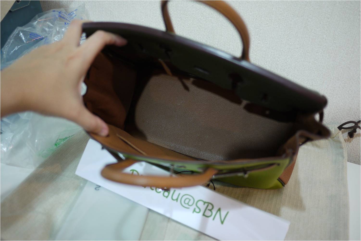 สภาพดีมาก เพราะรักมาก ใช้อย่างทะนุถนอมค่ะ ขนาดใหญ่และจุมากไม่แพ้ใบแรก ตามมุมมีรอยเปื้อนจางมากๆ ตามรูป แต่แทบมองไม่เห็นค่ะ