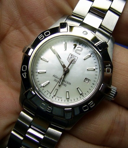 Tag Heuer Aquaracer หน้าปัดสีขาวมุกไฮโซ