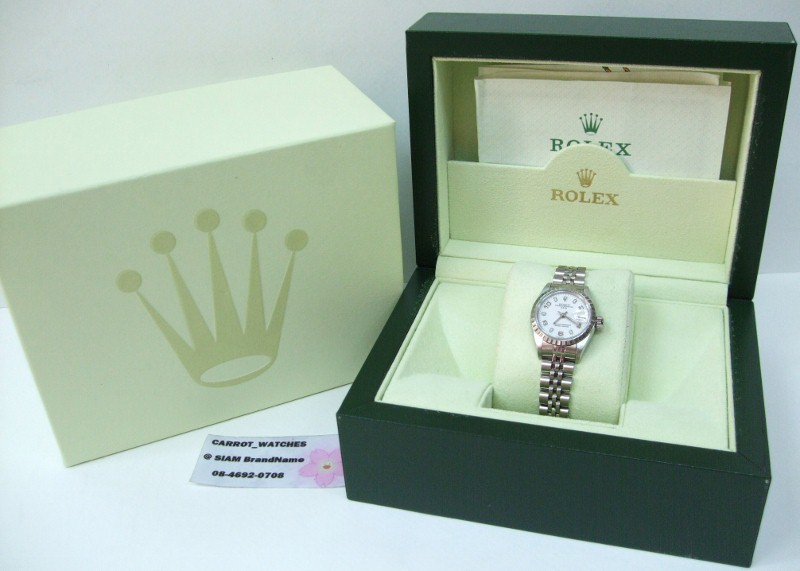 Rolex datejust (lady size) เรือนนี้เป็นตัวใหม่ล่าสุด หน้าขาว เลขโรมันใหญ่ แบบมีวันที่ สายเหล็ก กระจกเลเซอร์ สภาพดีมากคะ SALE: 137,000 บาท
