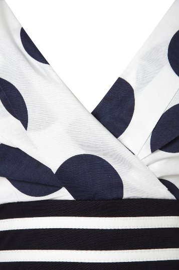 เดรสลายจุดแดง-น้ำเงิน ดีเทลเก๋ตรงช่วงเอ