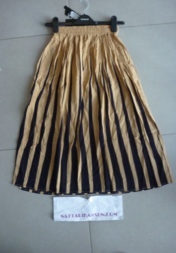 กระโปรงสีครีมอัดพรีทเล็กน่าร้ากก ขอบดำ