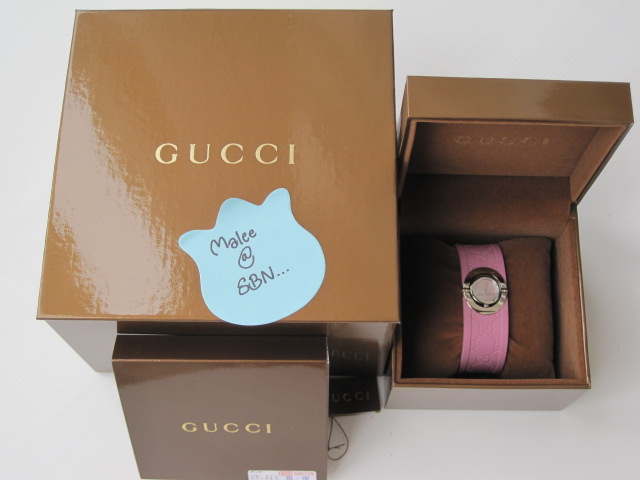 NEW!! GUCCI TWIRL RUBBER /STAINLESS WATCH (Lady size) ของใหม่ค่ะ! สวยหวานน่ารักมากๆ หน้าปัดเป็นมุกชมพู เป็นสายยาง ด้านหลังเป็นStainless สามารถตัดสายให้เข้ากับข้อมือได้ค่ะ อุปกรณ์ครบ มีพร้อม Booklet กล่องในและกล่องนอกค่ะ ขาย 20,000>>>>Sale 17,000 งดต่อราคานะคะ