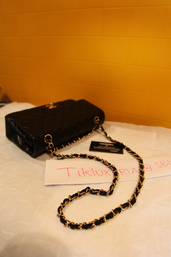 Chanel Classic 10" Medium size Lamb skin ใบนี้คลาสสิคตลอดกาล เป็นหนังแล้ม สีดำ โซ่ทอง หรูมากค่ะ ยังเป็นราคาเก่านะคะ ราคาเพียง 118,000 บาท