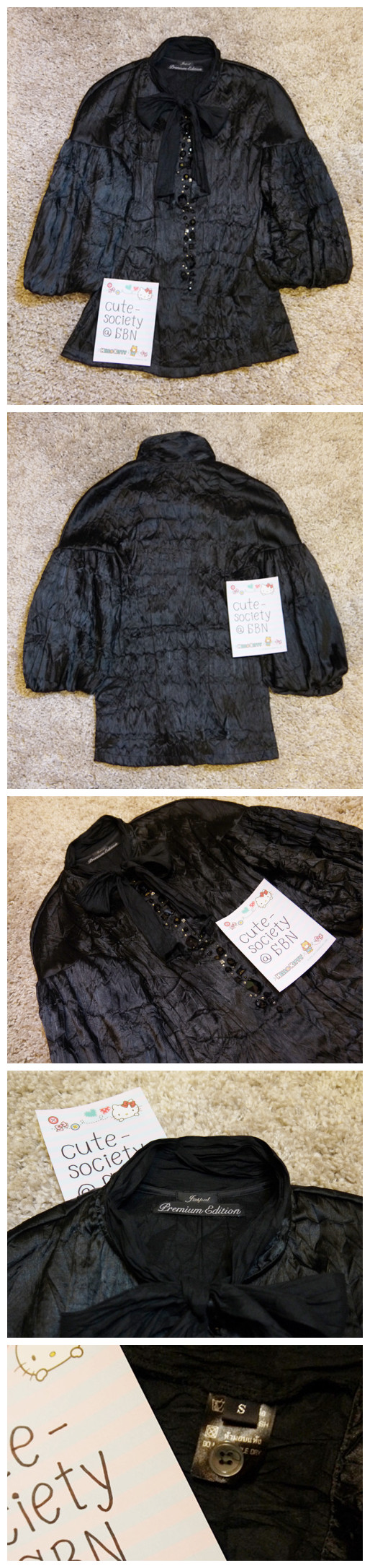 ผูกโบว์ที่คอเสื้อได้ค่ะ แขนพอง รอบอกประมาณ 34" ค่ะ