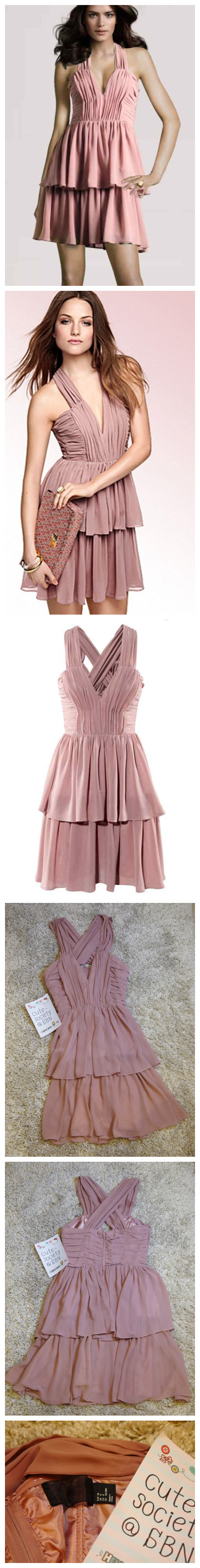 3.ชุดเดรส H&M By NIght Pink Chiffon Cocktail Party Dress size 38