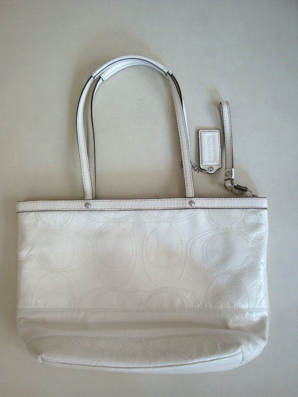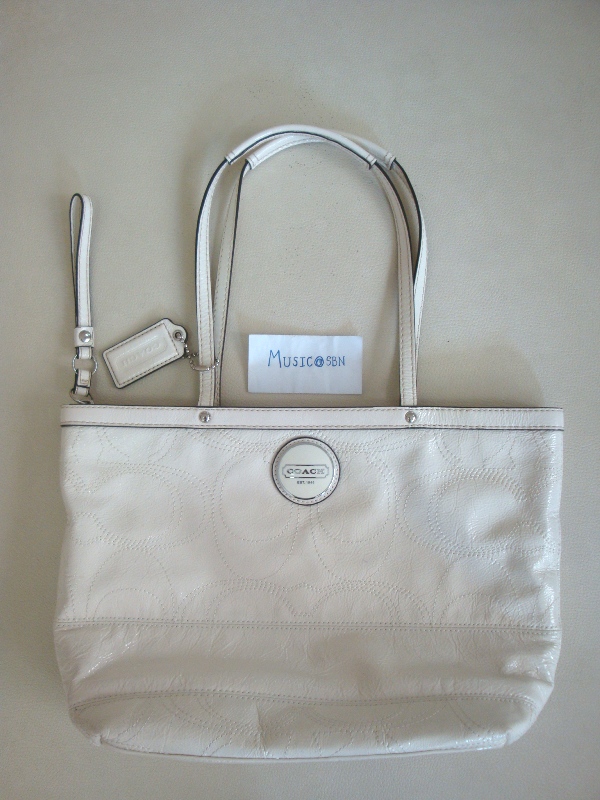 NEW COACH Signature Stripe Tote : สีขาว ขนาด 25 x 25 x 36 cm.cm cm ==> ใบละ 3,500ค่ะ