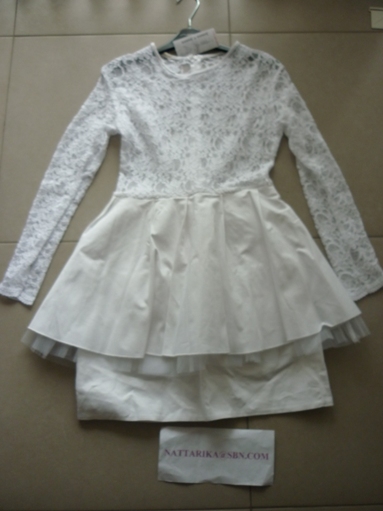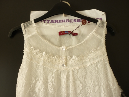 เสื้อผ้าชีฟองสีขาวด้านหน้าทำเป็นดอกุหลาบเล็กๆหลายๆดอกน่ารักดีค่ะ