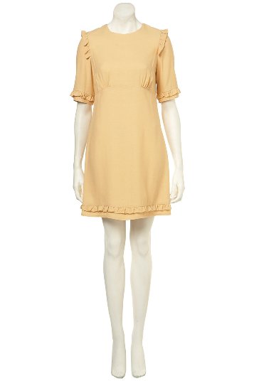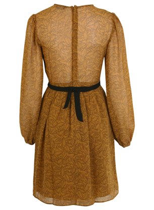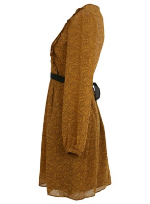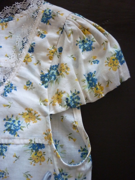 เดรสลายดอกไม้โทนสีเหลืองสดดใส ดีเทลตรงเอวเป็นผ้าลูกไม้ถักน่ารักดีค่ะ
