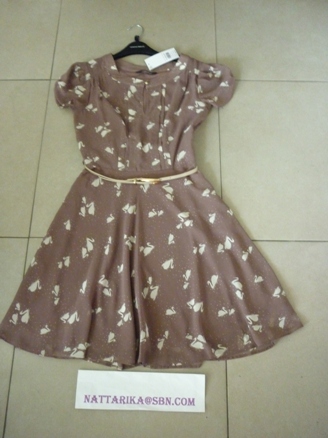 สินค้าอยู่ไทยแล้วส่งฟรีอีเอ็มเอสค่ะ– DoroThy Perkins เดรสลายหงส์แขนตุ๊กตามาพร้อมเข็มขัดสวยน่ารักมากค่ะ ( SizeUK10=sold) Size UK12/1