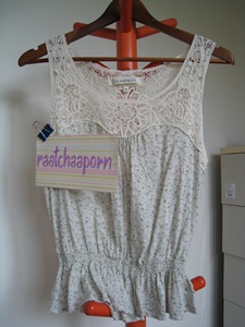 เสื้อแขนกุด ผ้ายืด ลูกไม้ ccoo size s ราคา 400 บาท