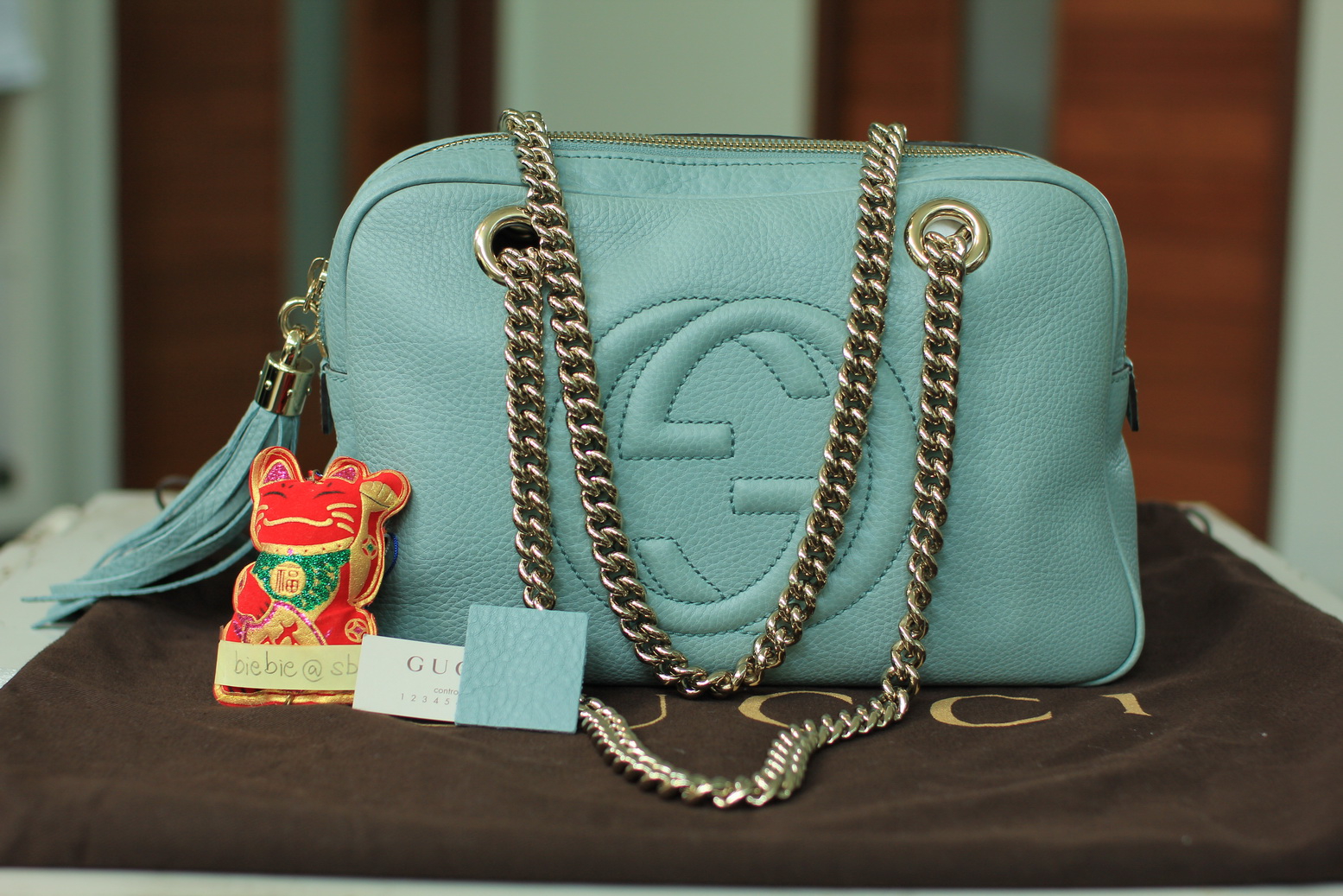 Used Gucci Hobo สีฟ้า size กว้าง 28cm*สูง 18cm* หนา 8cm