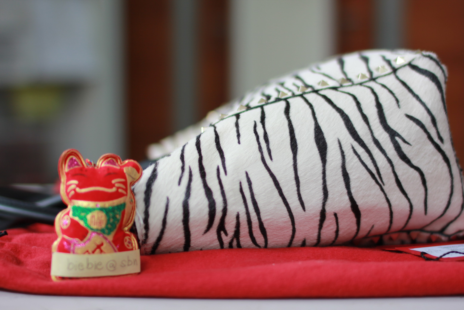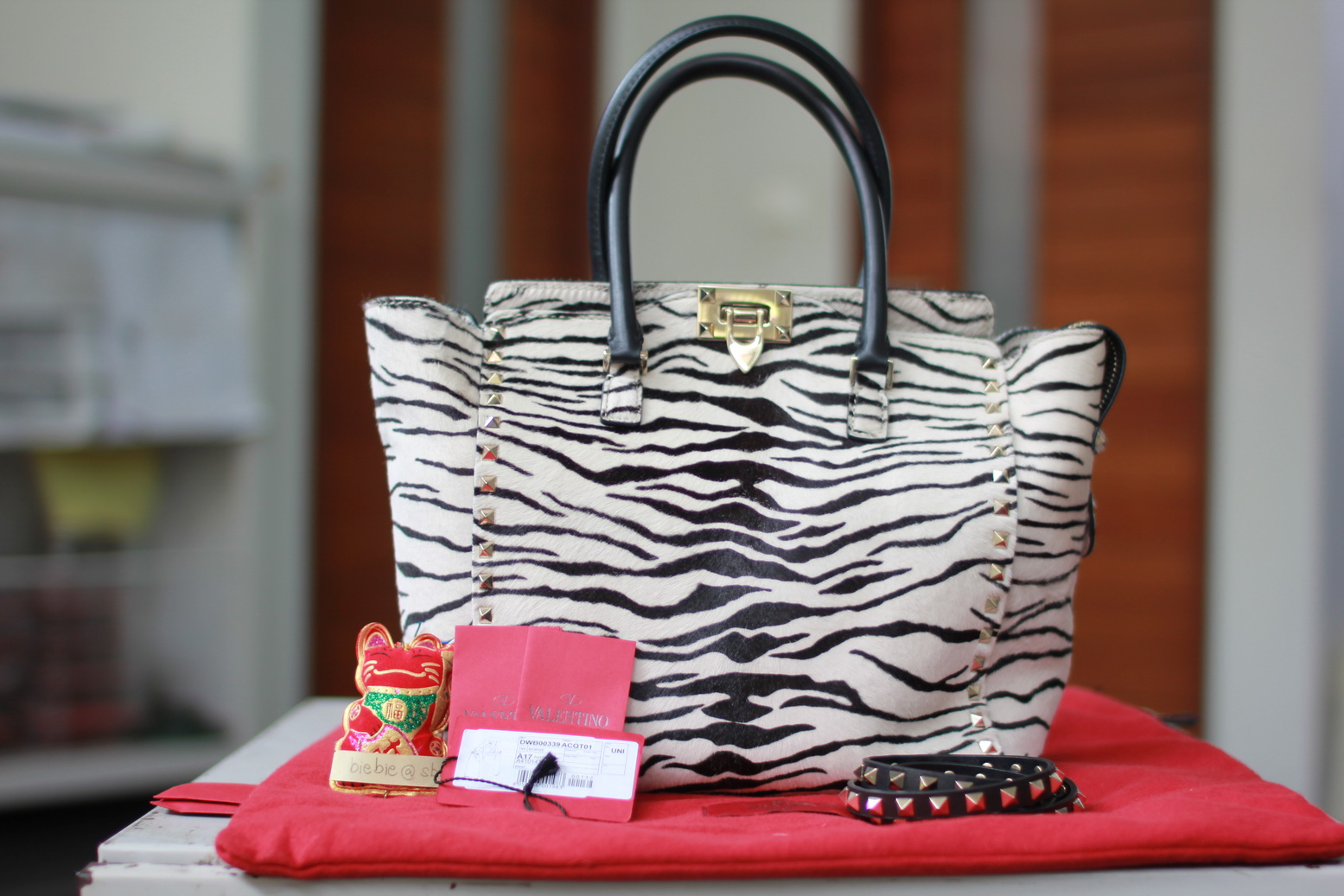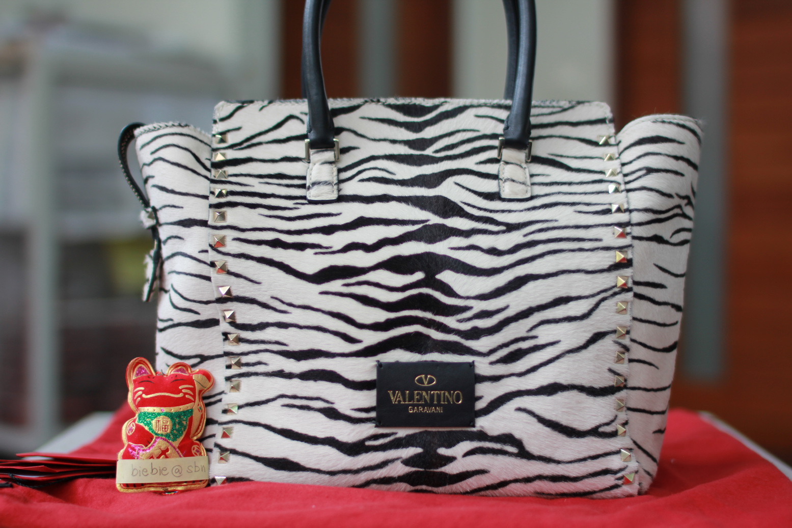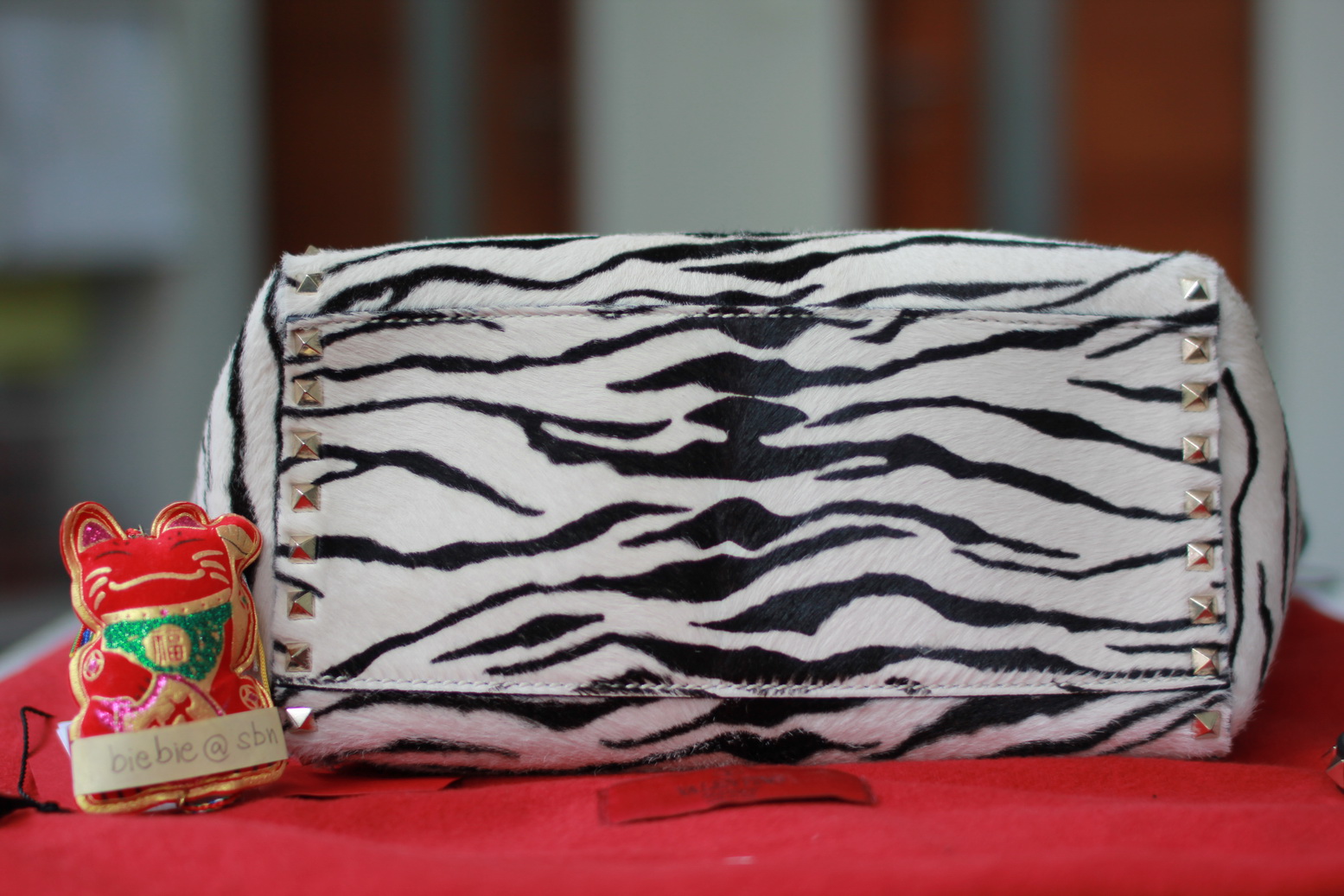 Used Valentino Rockstud Zebra Calf Hair Medium Tote Bag