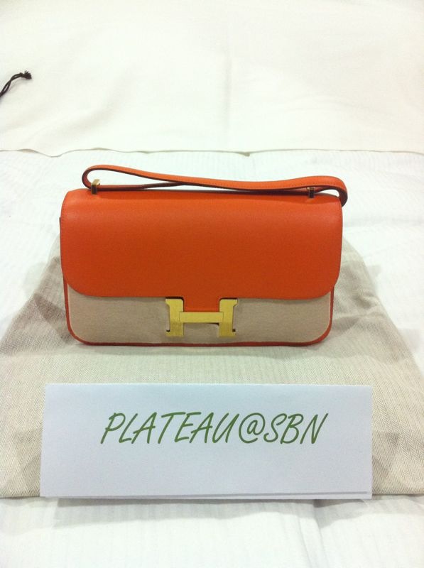 3. Brand new: Hermes Constance 24 cm / Crevette & Gris T colors / Swift & Suede leathers / Palladium Hardware / Stamp R