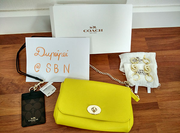 http://www.meejai.com/mjphoto.php?imgid=584509 ติดต่อ LINE: peipei_1214 , 096-747-9369 เพ่ย ของใหม่ทุกชิ้นค่ะ ราคารวมส่งEMS ถึงบ้าน หรือจะนัดรับก็ได้ค่ะ ตามแนวรถไฟฟ้าค่ะ NEW Coach mini ruby cross body yellow สีสดๆต้อนรับลมร้อนเลยค่ะ หายากด้วยค่ะสีนี้ 4,300 THB http://www.meejai.com/mjphoto.php?imgid=584510 New coach signature lanyard ที่ห้อยบัตรพนักงาน 1,550 THB http://www.meejai.com/mjphoto.php?imgid=584511 Coach keyring มี 2 ชิ้นค่ะ ราคา 1,250 THB (ห้อยคู่กับกระเป๋าน่ารักมากค่ะ) http://www.meejai.com/mjphoto.php?imgid=584508http://www.meejai.com/mjphoto.php?imgid=584512