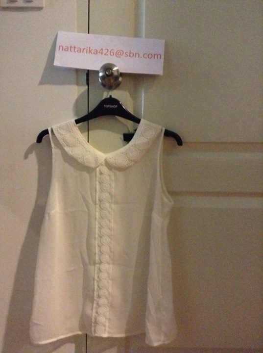 –♥ H@M เสื้อผ้าชีฟองแขนกุดคอบ้วลูกไม้สีขาว Size S สภาพใหม่ขั้นเทพซื้อมาใส่ครั้งเดียว