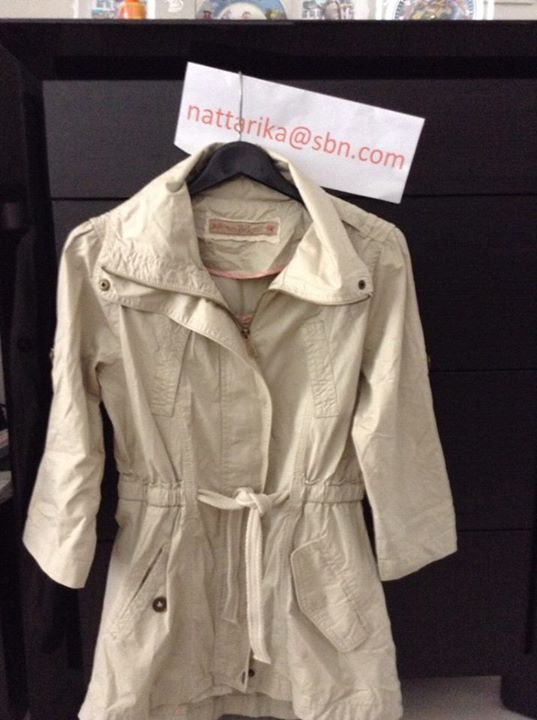BERSHKA SIZE M เสื้อแจ๊กเก็ตสีครีมแขนใส่พับติดเหนือศอกประมาณสี่สวน --SOLD!--