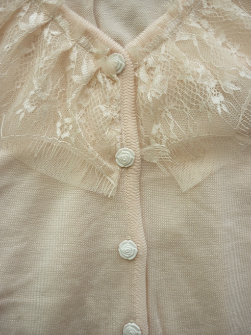 โทนชมพู-ครีม คอบัว+แขนตุ๊กตามีลูกไม้ถักรอบคอ+ปลายแขนเสื้อ