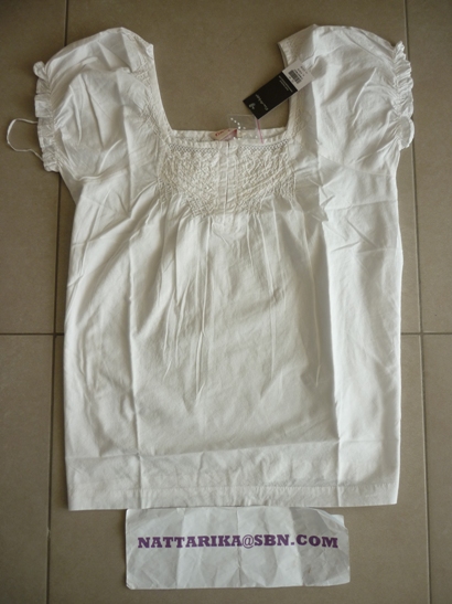 เสื้อเชิ๊ตสีขาวแขนจับยกตั้งๆ ทรงเข้ารูปนิดๆ