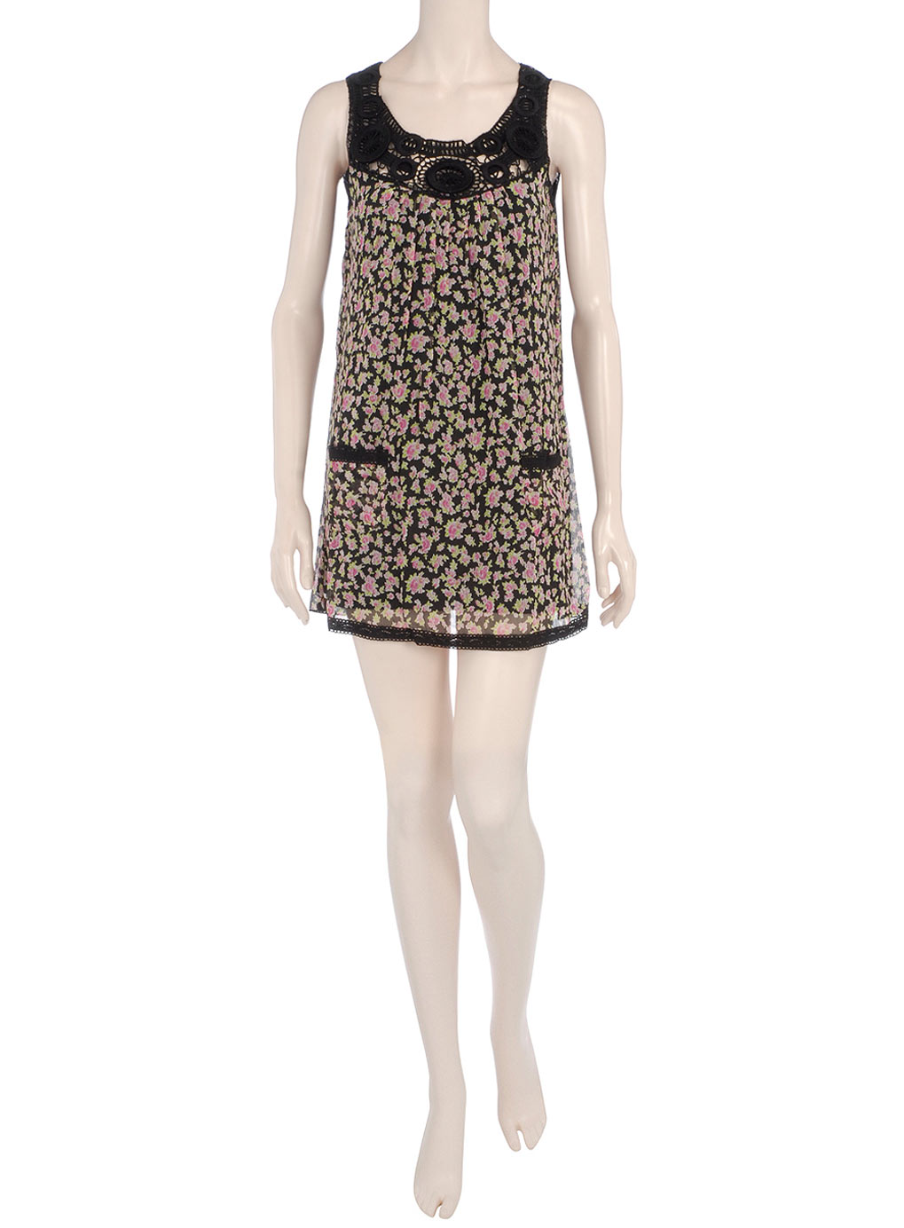 เดรสผ้าชีฟองแขนกุดลายดอกไม้เล็กๆน่ารักๆ เก๋ตรงด้านหน้าทำหมือนถักๆ