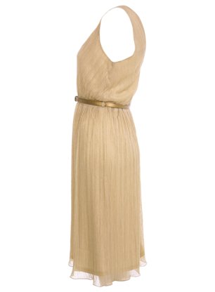 เดรสสีครีมทองแขนกุดอัดพรีทน่่าร้ากมาพร้อมเข็มขัดทองสวยจริงๆ