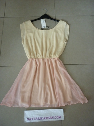 เดรสผ้าชีฟองสีครีมมาพร้อมเข็มขัดน่ารักๆ กระดุมเพชร