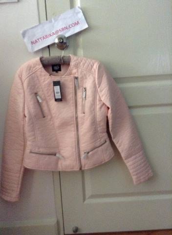 ♥♥– NEW LOOK leather pink jacket Size 10 /14-15 รอบอก36-37นิ้วไหล่16นิ้วยาวประมาณ22นิ้ว