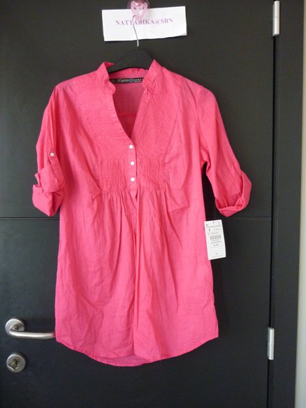 เสื้อผ้าฝ้ายตัวยาวสีชมพูน่าร้ากกกก ดีเทลด้านหน้าสวยๆ