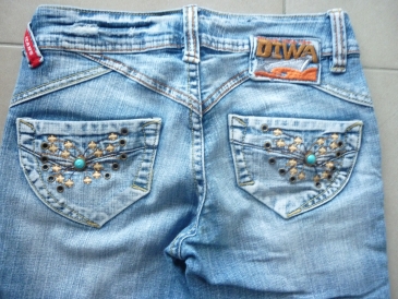 จากเบลเยี่ยม ด้านหลังยีนส์แต่งน่ารักดี ความยาวตอนยังไม่พับขา 36นิ้ว