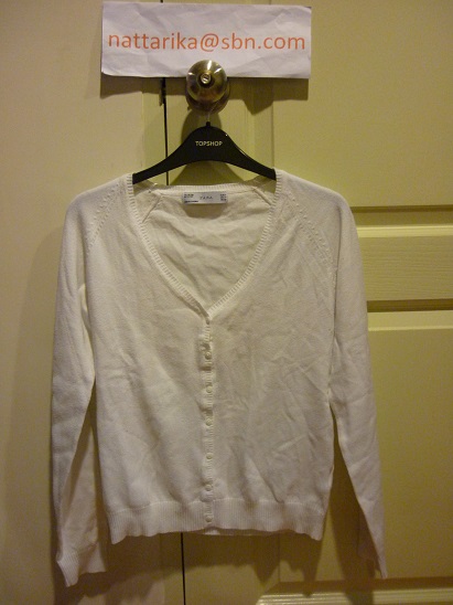 ♥♥–‘๏’– ZARA SIZE M เสื้่อคาดิแก้นสีขาว ขายแค่250บาทส่งฟรึค่ะ♥