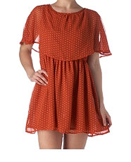 เดรสแขนกุดผ้าชีฟองสีส้มสวย ดีเทลเก๋ตรงคอ มาพร้อมเข็มขัดหนังน่ารักๆ